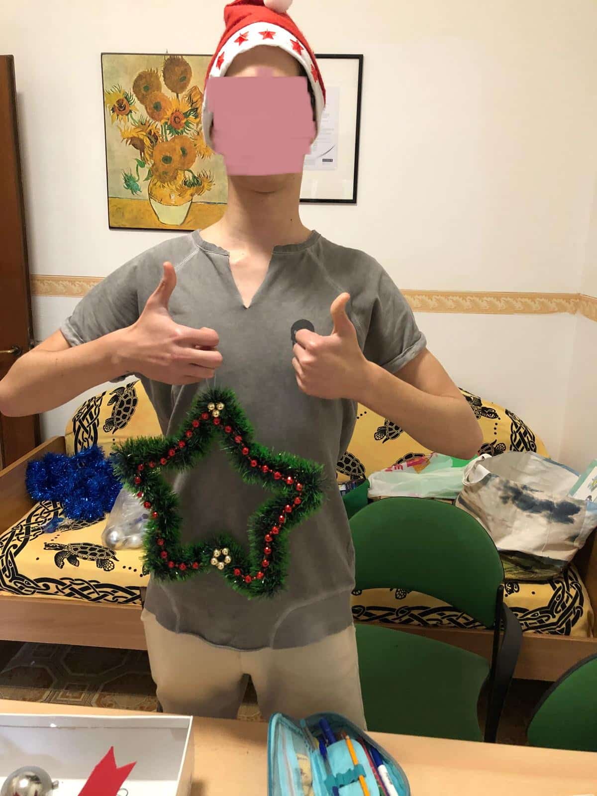Stessa operosità l’hanno dimostrata da far suo i ragazzi della cooperativa di Reggio Calabria che impiegando la “Carta Eva”, colla a caldo, stampi per decorazioni hanno dato vita a delle graziose lanterne, utilizzate poi come addobbo per l’albero, ma anche a delle ghirlande natalizie di pregevole lavoro.