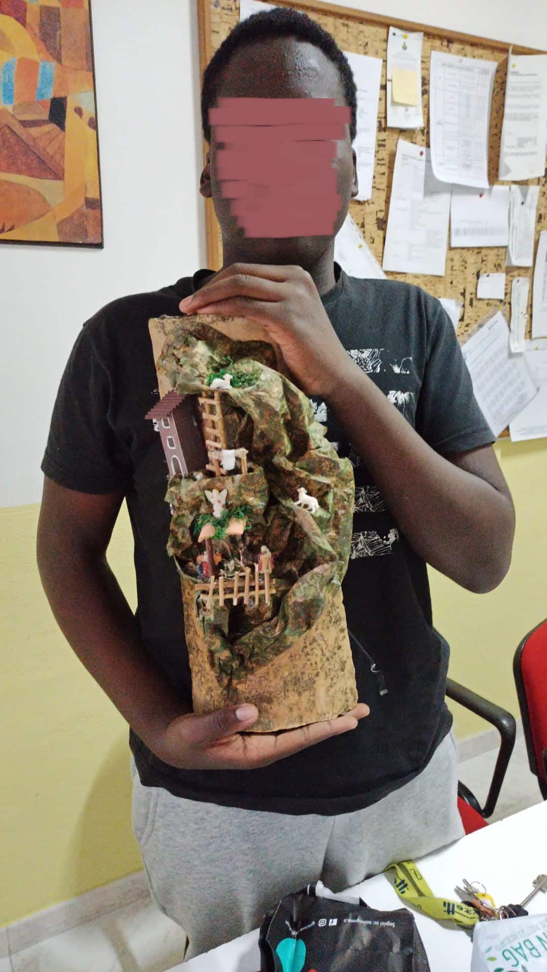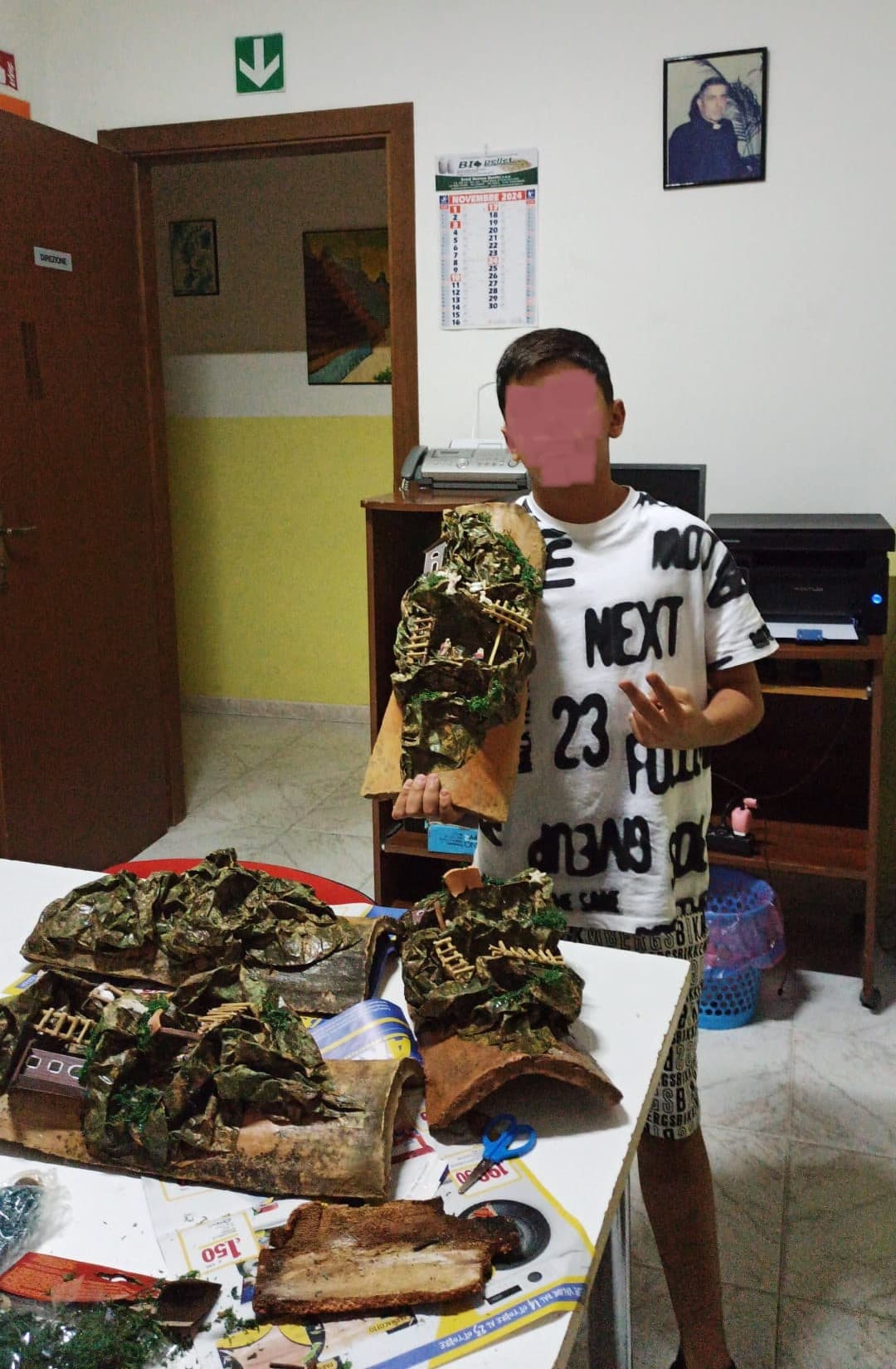 A testa in giù, chinata verso il tavolo da lavoro, i ragazzi di Melito Porto Salvo si sono dedicati a comporre delle bellissime riproduzioni di Presepi (“O Presepio” come disse l’indimenticabile Eduardo De Filippo nella famosa opera teatrale “Natale in casa Cupiello”) e di stelle luminose impiegando gli utensili più comuni come forbici smussate, colla a caldo per assemblare i pezzi di corteccia di sughero, ma anche tegole antiche che sono servite come piano su cui adagiare e dare forma ai caratteristici presepi.